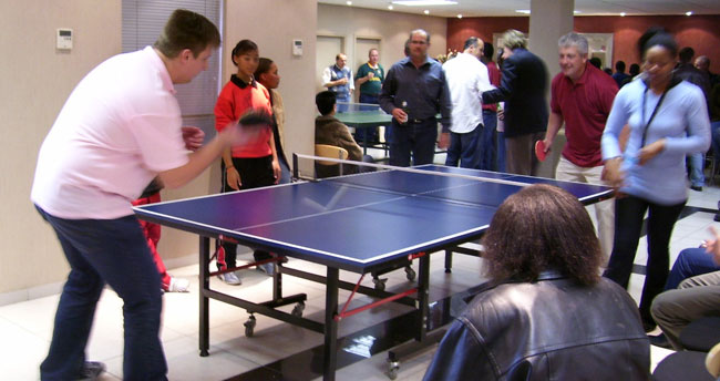 The afternoon was facilitated by Sarel who walked around ensuring continuity of play, while patiently explaining the rules of table tennis to all corporate participants; some of which have never played the game. There were also some surprises with one person displaying proper Table Tennis delivery and poise – turns out that he played for Gauteng North many years ago.