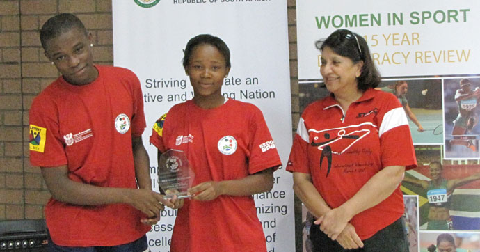 During lunch time, South Africa’s number 1 senior player and SA’s 2nd ranked lady put in an exhibition of drills and exercises much to the amazement of all present. In conclusion, they proceeded to challenge each other to a shortened version of a match - the lob shots were spectacular, as were the from behind top-spin drives, chop returns and fore-hand smashes. Glorious stuff indeed.